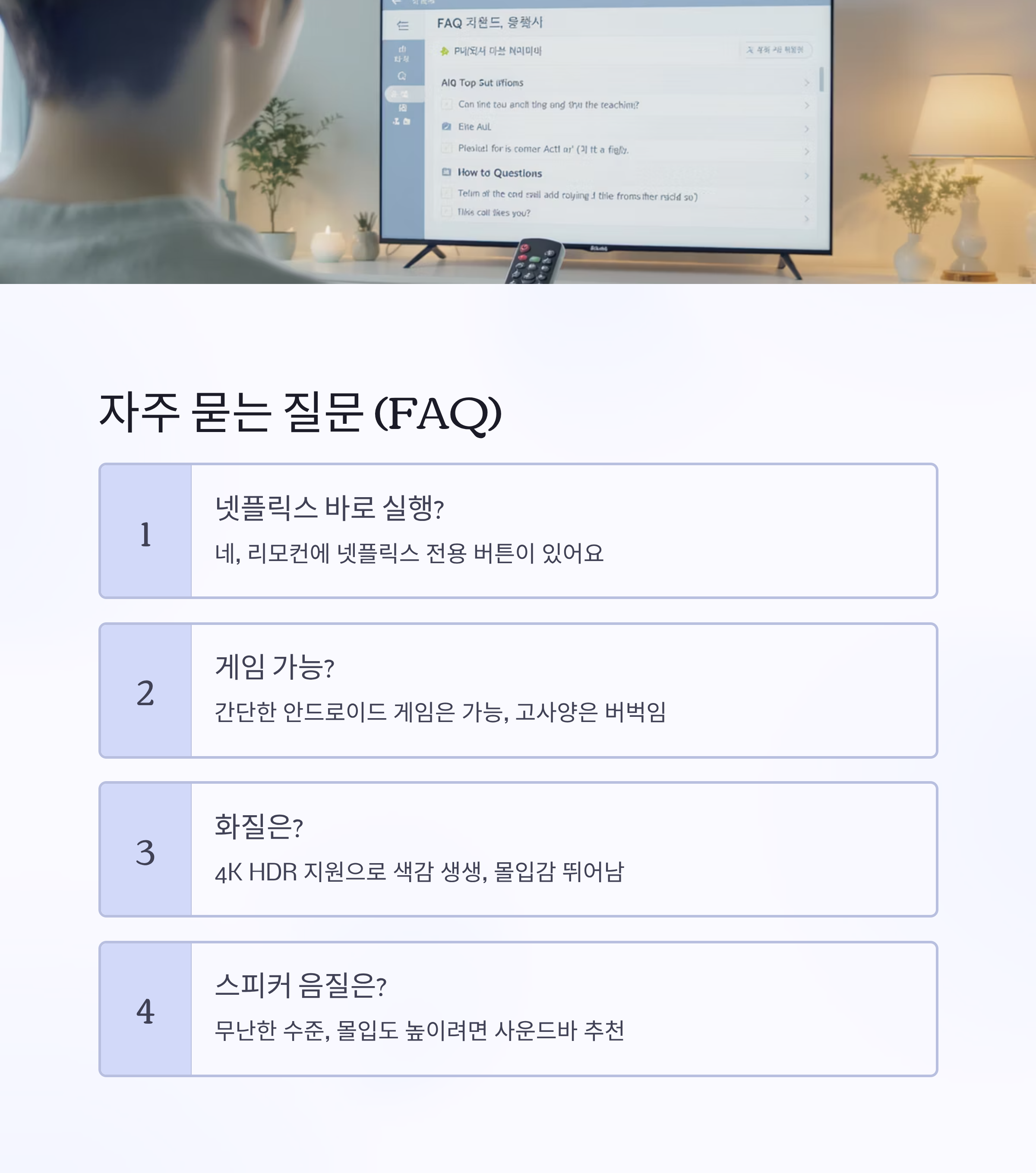 👉 네, 리모컨에 넷플릭스 전용 버튼이 있어서 바로 실행됩니다.