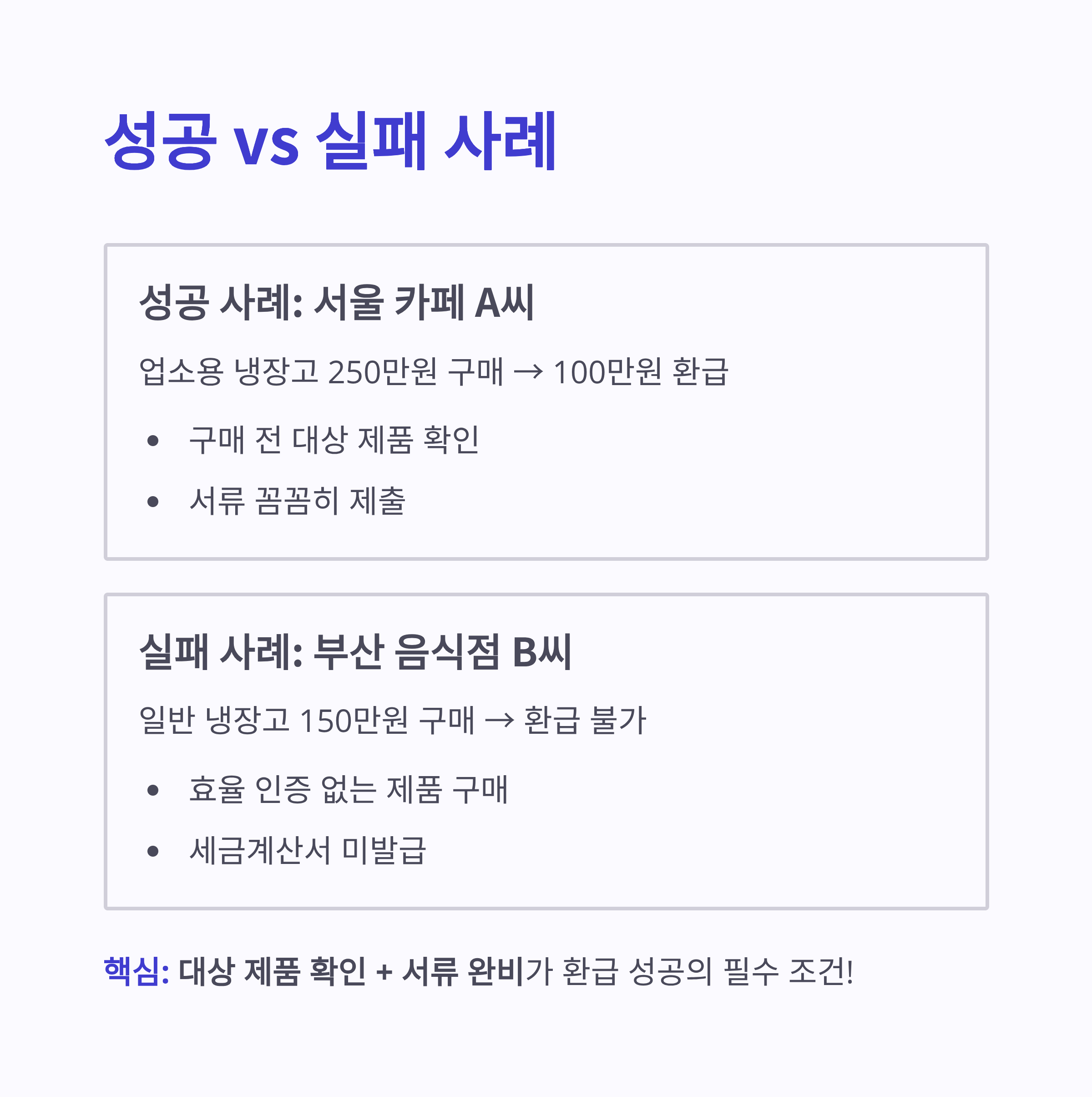 업소용 냉장고 250만 원 구매 → 100만 원 환급