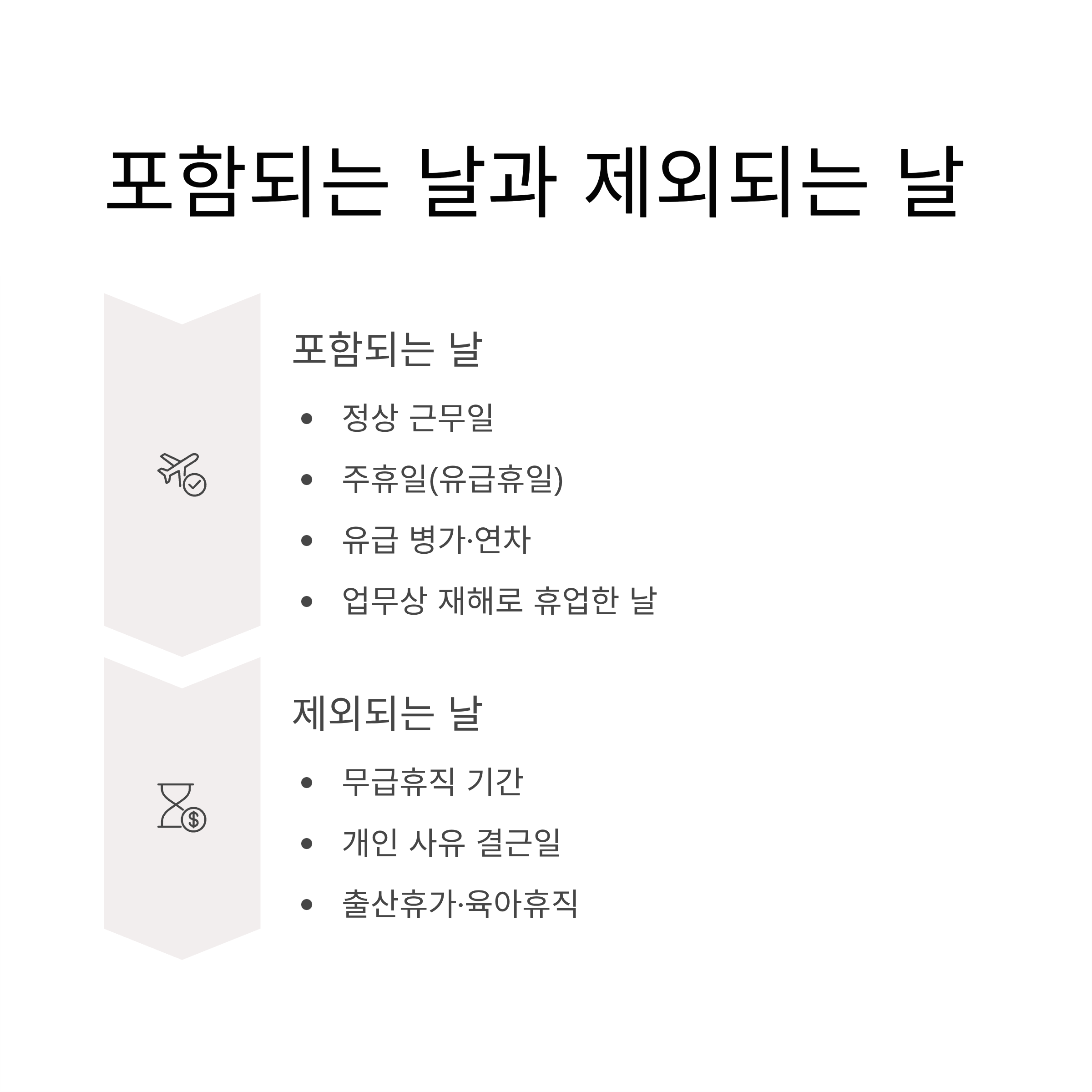 - 계약 기간 중 근무한 모든 날 + 유급휴일 포함
