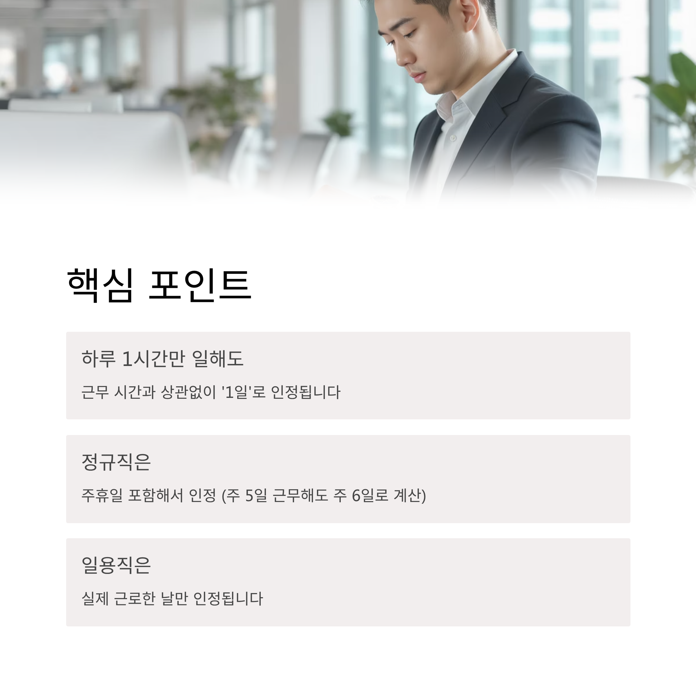 - 하루에 1시간만 근무해도 ‘1일’로 인정