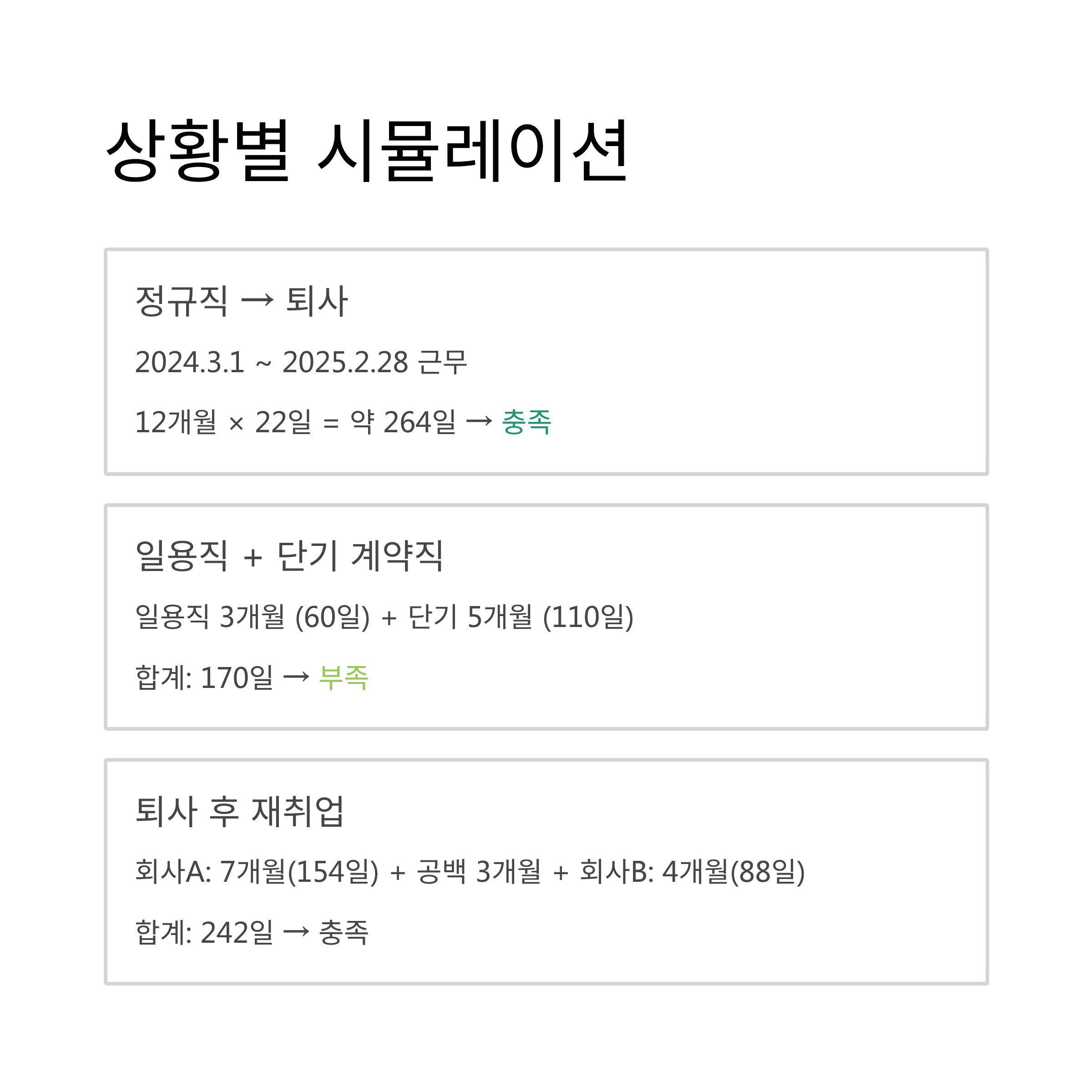- 일용직 근무 활용: 단기라도 고용보험 가입하면 일수 인정