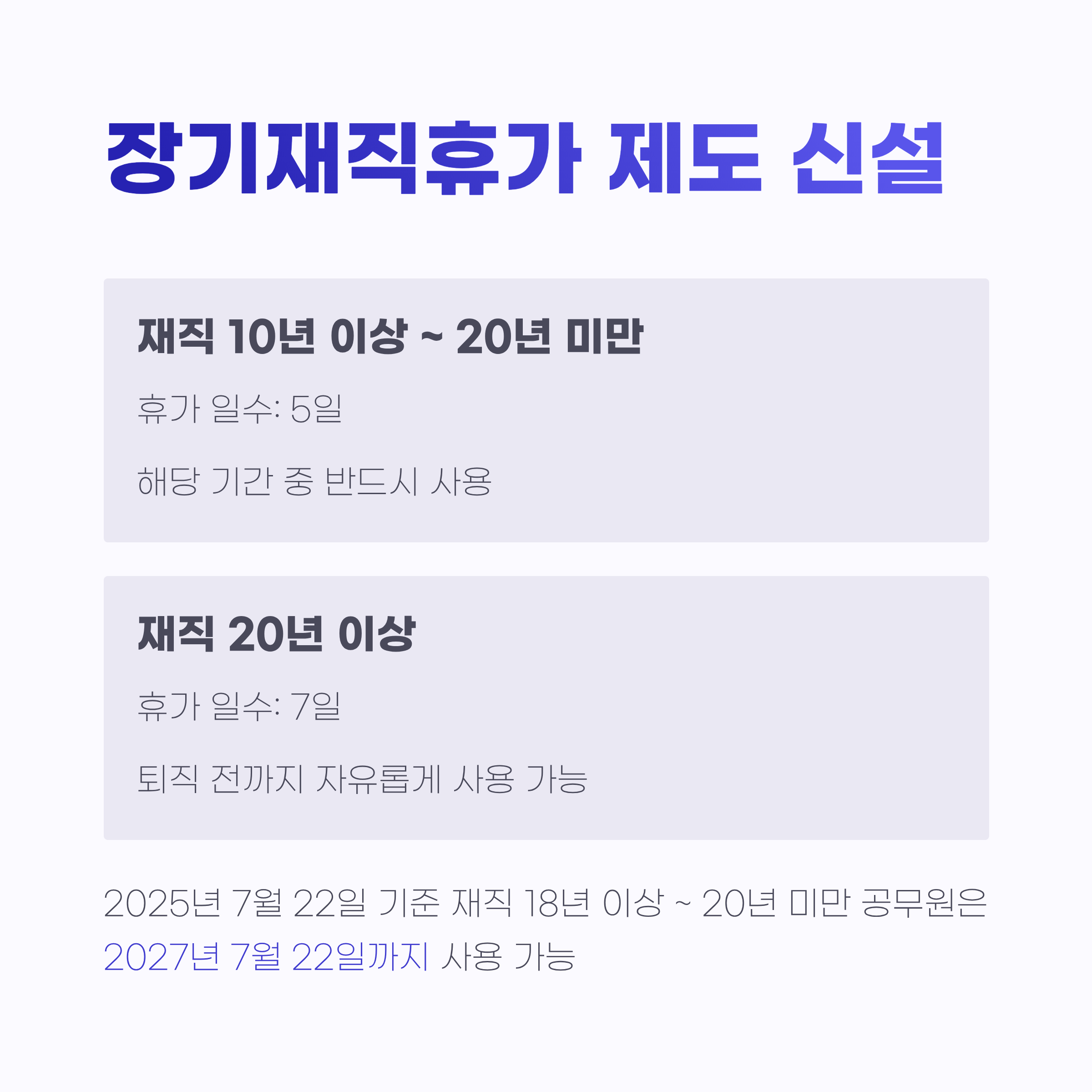 공무원의 장기 근속에 대한 보상 성격의 휴가도 이번에 새롭게 도입되었습니다.