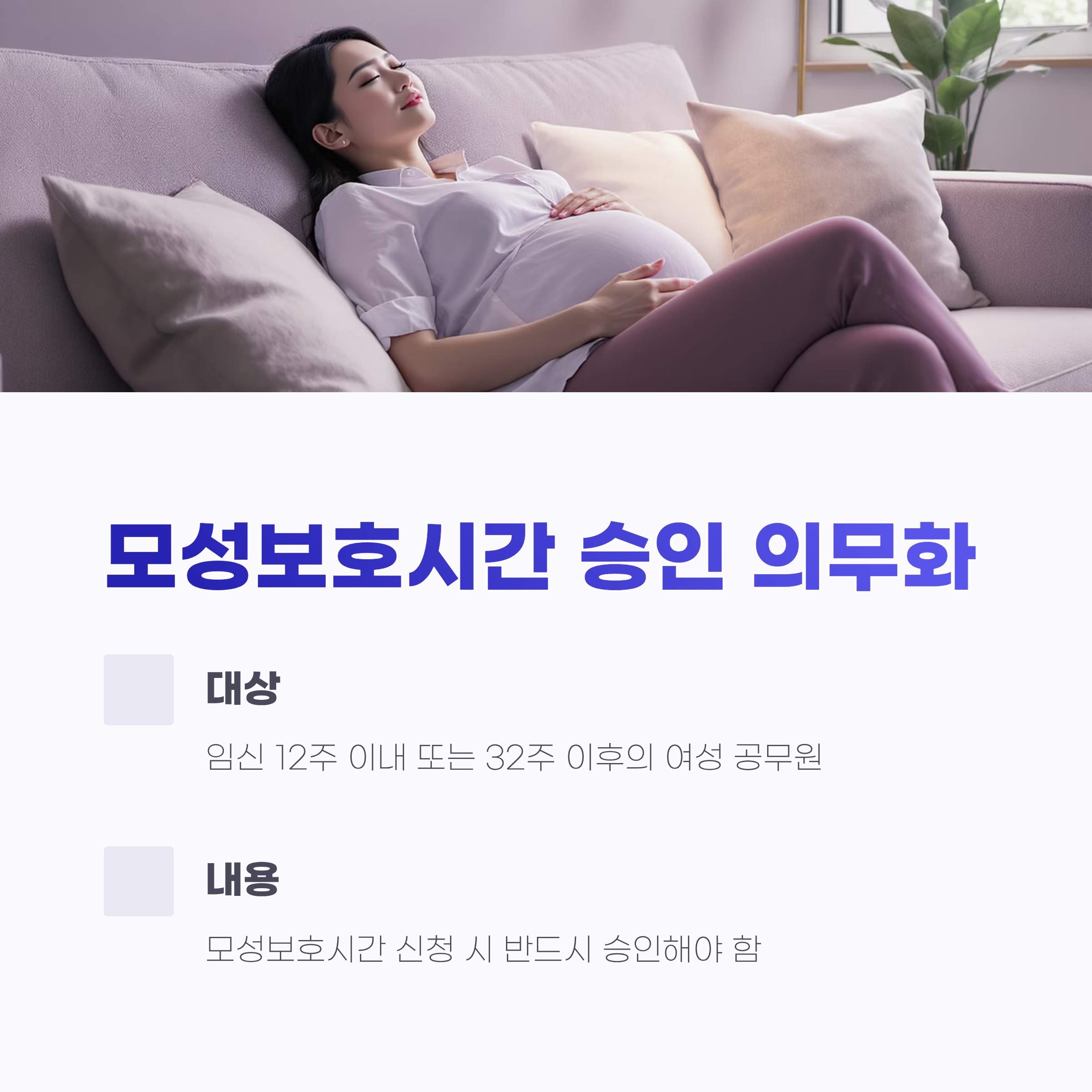 - 모성보호시간 승인 의무화 – 여성 공무원 건강 보호 강화