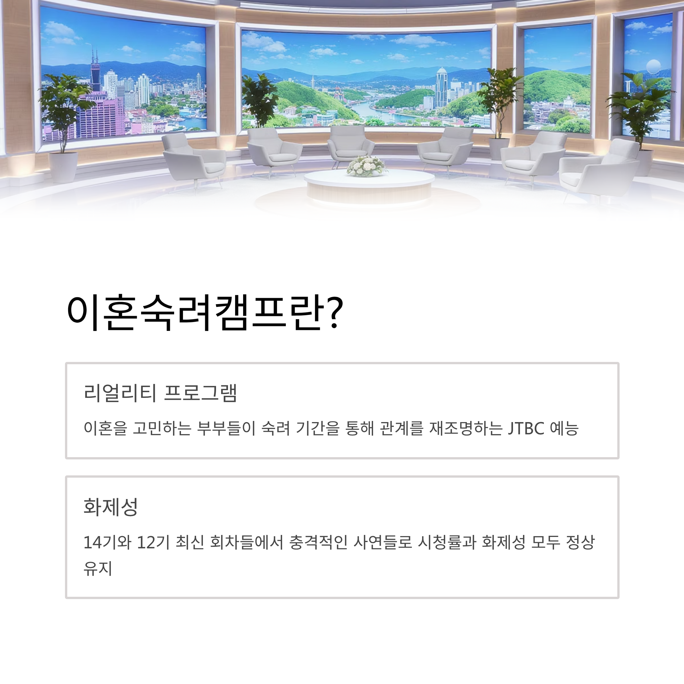 1. 서두– 요즘 가장 뜨거운 화제, 그 중심에 선 ‘이혼숙려캠프’