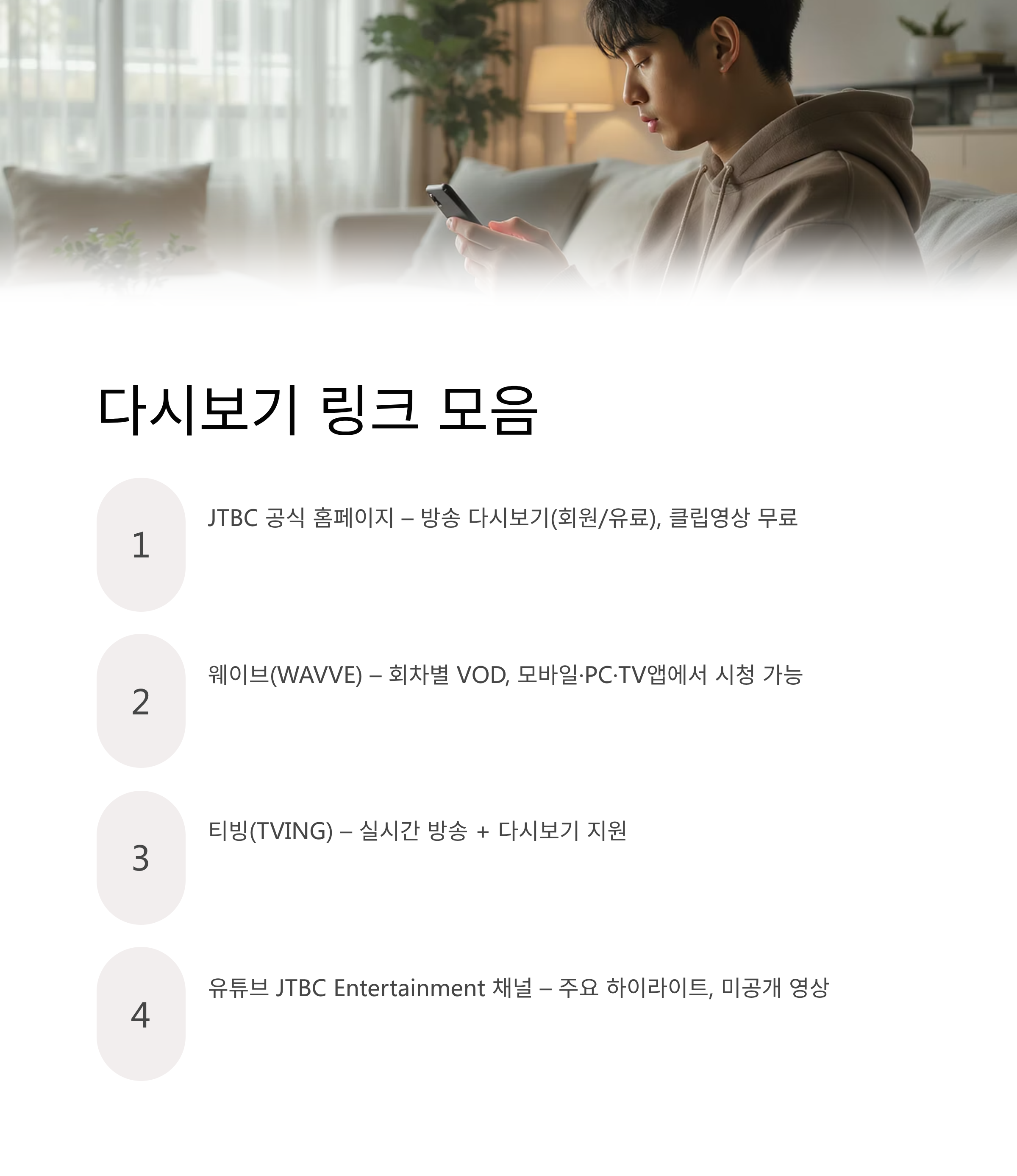 - 유튜브 JTBC Entertainment 채널 – 주요 하이라이트, 미공개 영상 제공(전 회차는 아님)