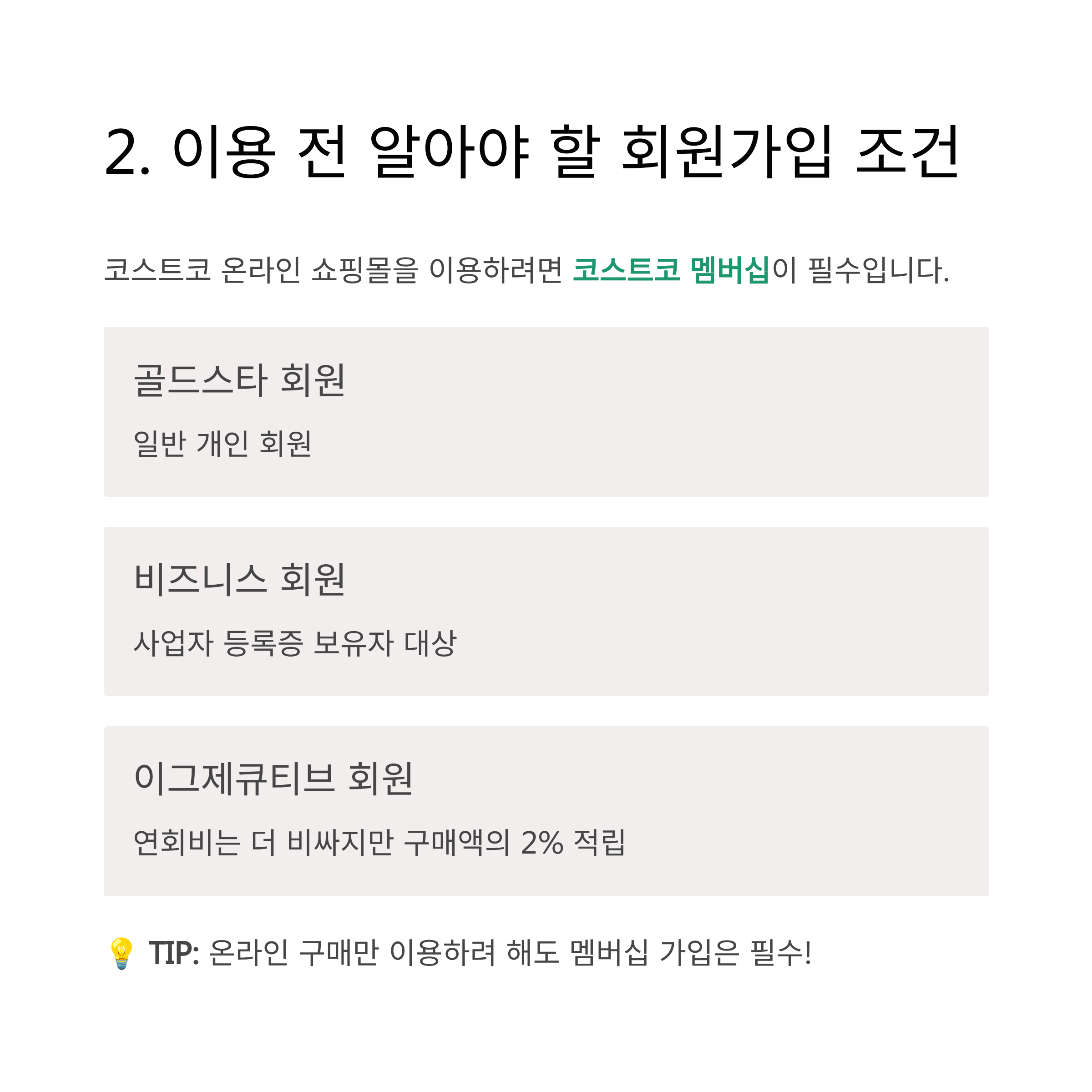 - 코스트코 회원만 이용 가능 (게스트 구매 불가)